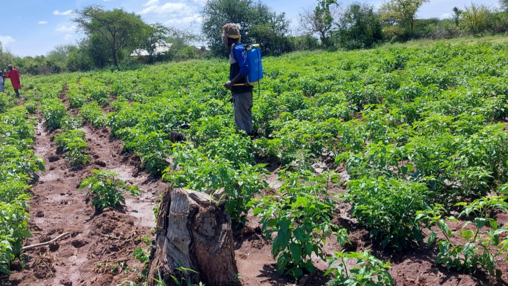 The vegetables make my soul sing for joy! Fat round cabbages surrounded by leafy Sukuma wiki and spinach. Juicy tomatoes ripening on the vine. Birds Eye chili that the birds are constantly keeping an eye on. Waiting for them to ripen so they can eat them. Onion plants untouched by thrips and already forming bulbs.